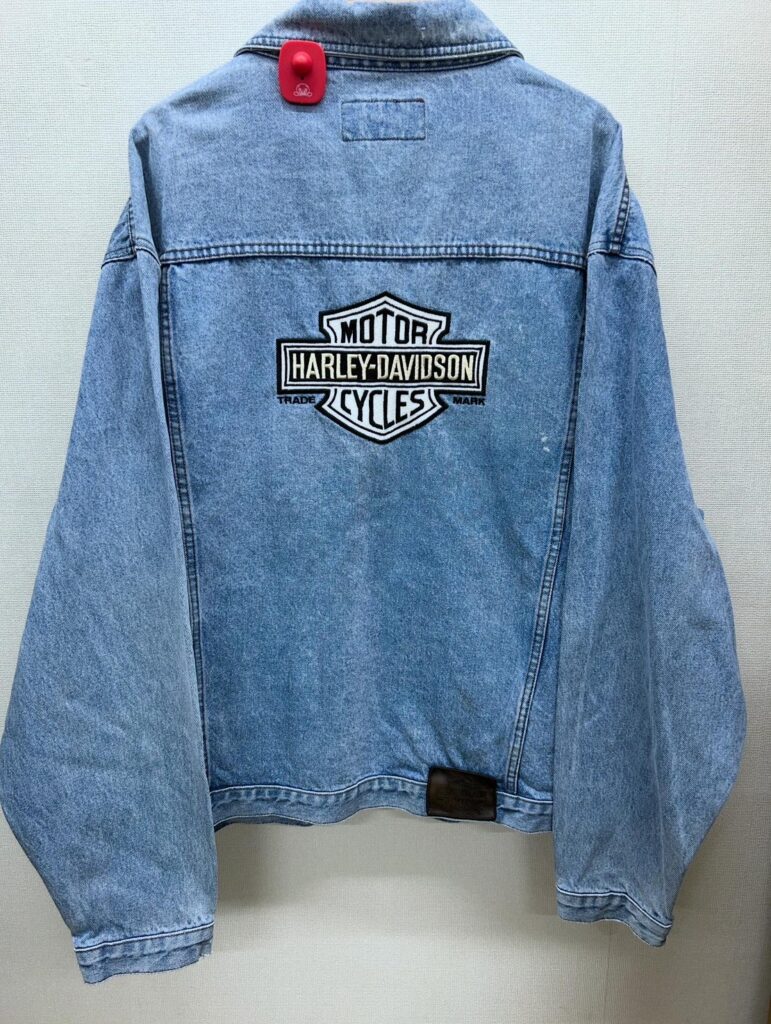 程よく色落ちしたデニムに、バックのロゴ刺繍が映える一着。