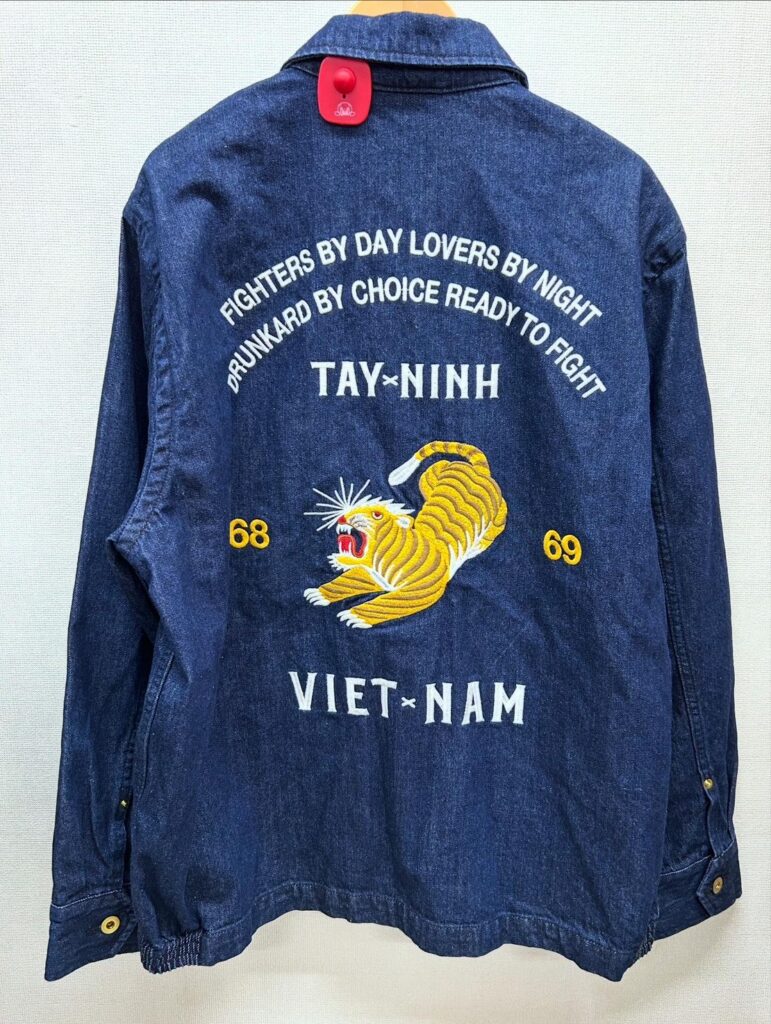 60〜70年代、ベトナム戦争時に米兵が現地テーラーで刺繍を入れた“ベトジャン”から着想を得て、HOUSTONが遊び心あるデザインをデニムに落とし込んだ1着。