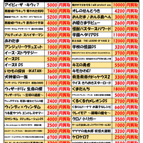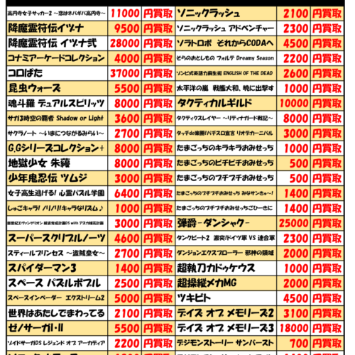 令和8年2月② ニューゲームハード/人気ゲームソフト 買取表