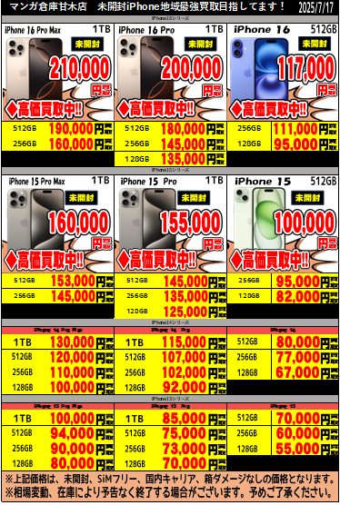 ■家電コーナー未開封iPhone買取価格更新です!■