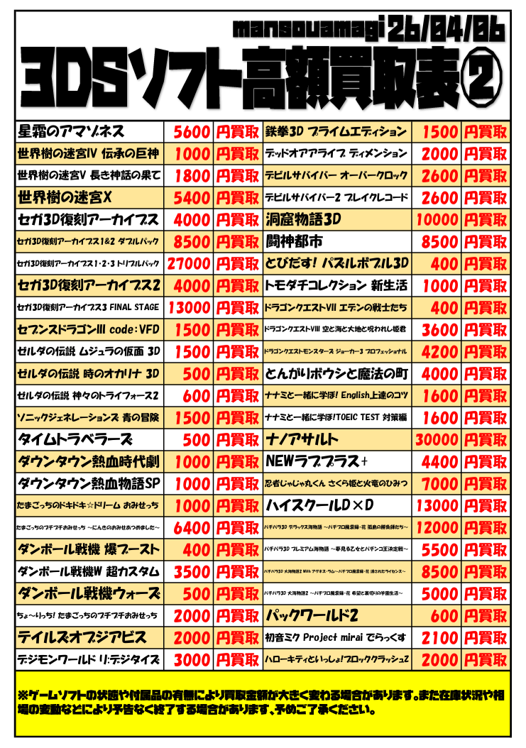 令和8年 任天堂3DSソフト買取表②