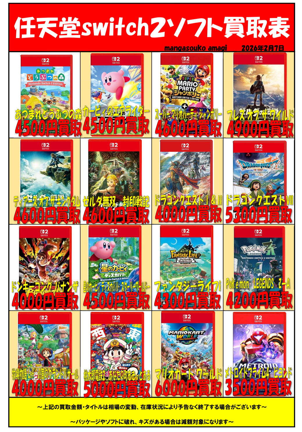 令和8年2月① 任天堂Switch2ソフト 買取表