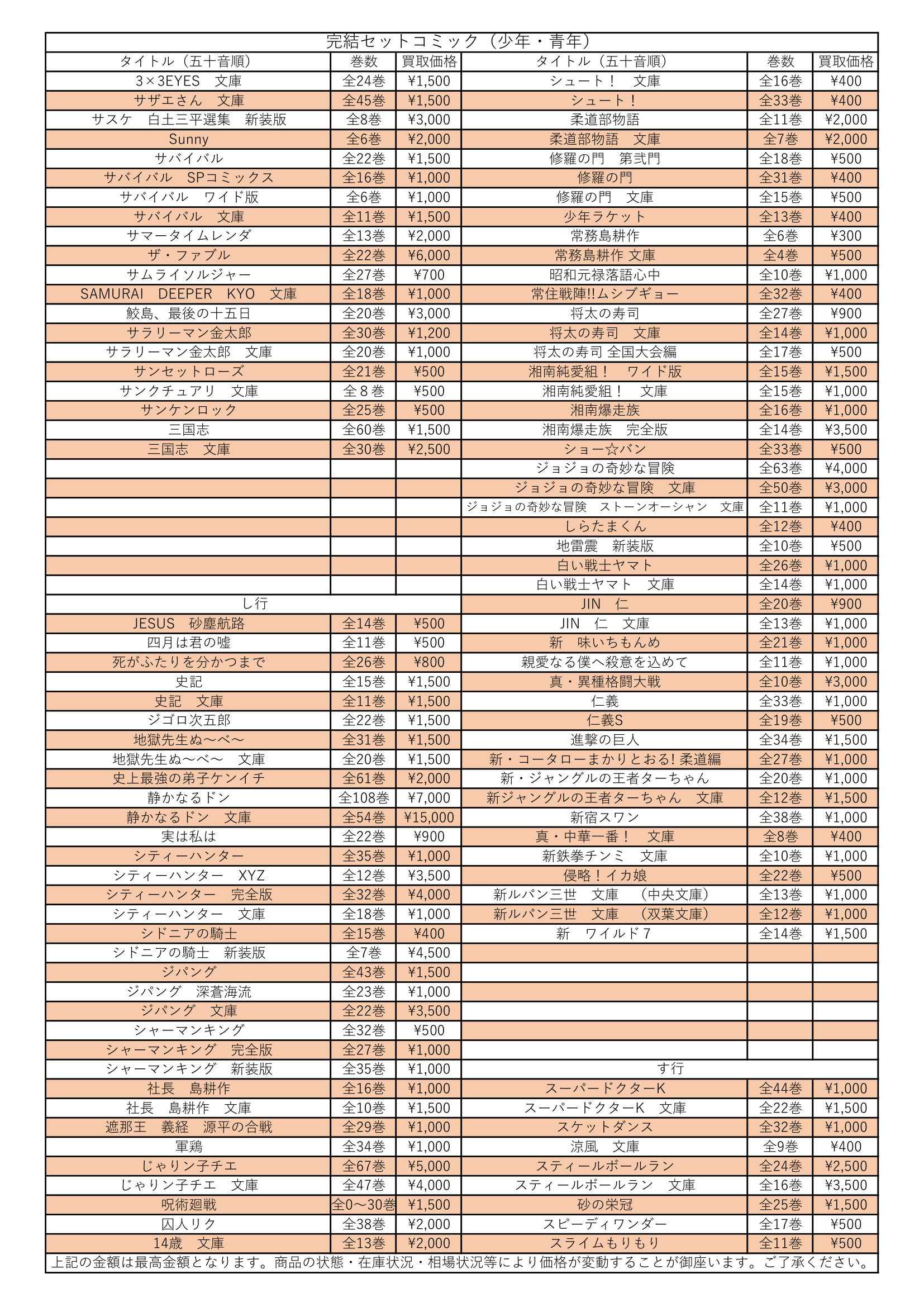男子コミック完結セット買取情報【さ行~す行】