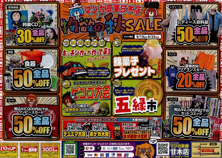 202509.12 新着情報 🎉【明日(9/13(土))からスタート!】秋のスペシャルセール開催! 🎉【明日(9/13(土))からスタート!】秋のスペシャルセール開催! お得なアイテムが盛りだくさん!お子さまから大人の方まで楽しめるラインナップで、この秋のお買い物をもっと楽しく、もっとおトクに。 📅 開催期間:9月13日(土)〜9月23日(火・祝)今だけのチャンスを、どうぞお見逃しなく! ※期間中は、ちょっと嬉しい企画もご用意しております♪ お客様のご来店をスタッフ一同心よりお待ちしておりますo(^o^)o