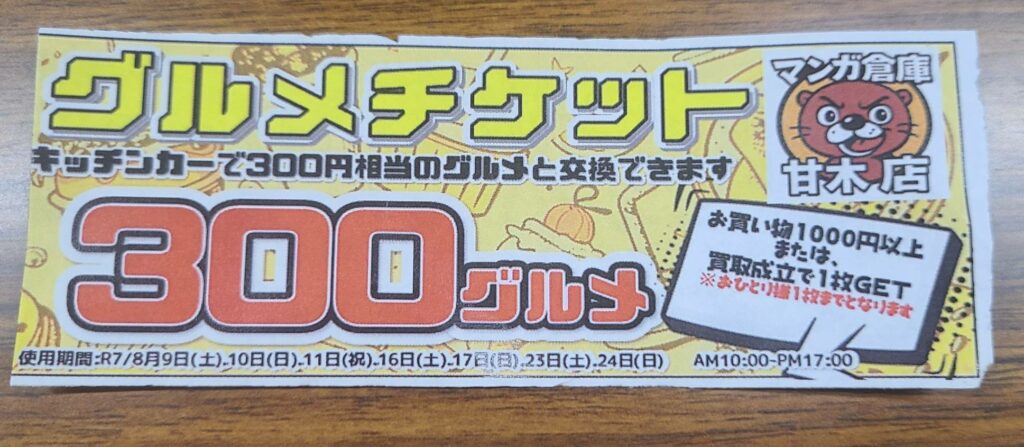 1000円以上お買い上げお客様に300グルメ(300円分)チケットを配布中です!