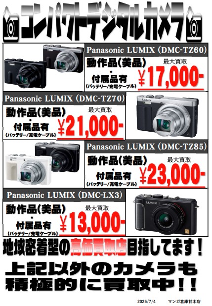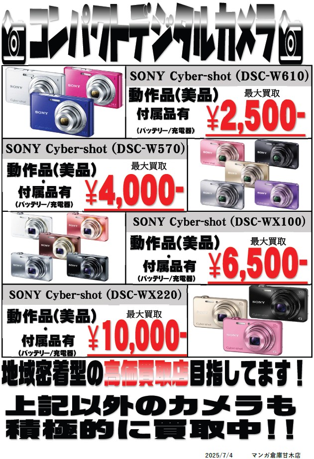 Panasonic、SONYのコンパクトデジタルカメラ買取強化のお知らせ!