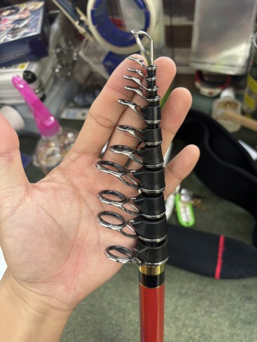 なんとスピニングタックルでのライトクエまで視野に入れた大物完全対応仕様で、その際太い糸の糸抜けを重視したガイドセッティングは何とKガイド12個採用のオールKガイド仕様‼️😳
