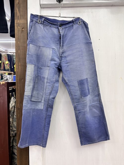 メンズ古着 ❗️新入荷情報❗️ VOLCAIN/モールスキンフレンチワークパンツ入荷しました。 size不明となります。 リペア有りですが雰囲気出ててカッコいいので、是非マンガ倉庫泡瀬店までお越し下さい。