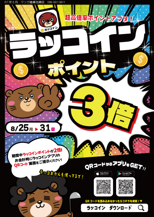 202508.25 イベント情報 ★☆ラッコインアプリ ポイント3倍☆★ 🪙🪙🪙🪙🪙🪙🪙ラッコインアプリポイント3倍🪙🪙🪙🪙🪙🪙🪙 沖縄尚学夏の甲子園優勝‼️おめでとうだよ‼️🥹🥹🥹 いつもはラッコインポイント2倍だけど今月は3倍にしちゃうよー‼️😳 あの時買おうか迷っちゃったアレが今ならポイント3倍でお買物できます‼️🥹🙌 ポイント3倍は8月31日まで!ぜひアプリをダウンロードしてご来店ください🥹🫶