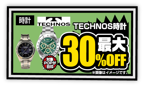 8/11~15日、TECHNOS腕時計最大30%セール実地します!!