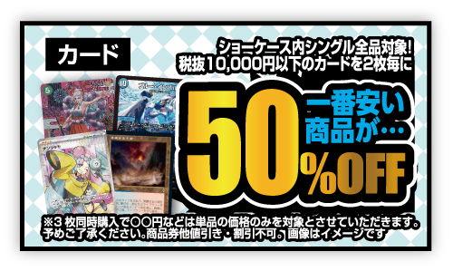 2枚同時購入で1枚半額!!(2枚の組み合わせのうち価格の低い方が対象となります)