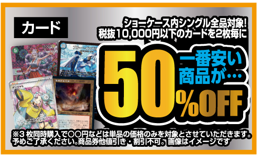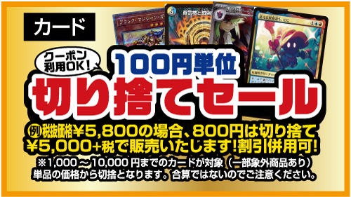 ※ショーケース内のシングルカードが対象、単品の金額からの切り捨てとなります。