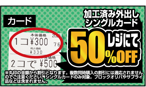 加工済み外だしシングルカードがレジにて50%OFF!