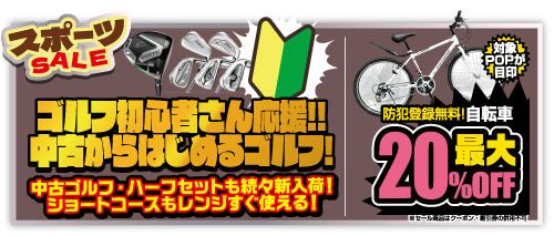 202602.07 未分類 スポーツコーナーSALE!! 2月7日~2月15日まで 対象の自転車が、 最大20%OFFセール!! 対象POPが目印です! 他にもすぐにコースを回れちゃうゴルフセット、クラブセットもございます! マンガ倉庫泡瀬店は初心者さんを応援致します! スポーツコーナー千円ガチャ情報 自転車が当たるファミスポガチャ稼動中! 只今、下賞が2個GET出来ちゃいます! 気になる方は、是非この機会にマンガ倉庫泡瀬店にご来店くださいませ。