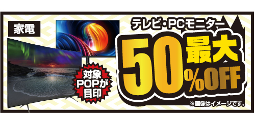 リサイクルコーナーでは1/4(土)~1/5(日)の二日間テレビ、PCモニターが最大50%オフのセールをやります!!この機会に買い替えてみてはいかがでしょうか!?
