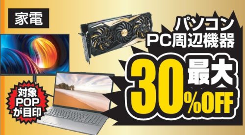 11月8日~9日の2日間パソコン本体、周辺機器、モニター等が最大30%オフのセールを実地します!!