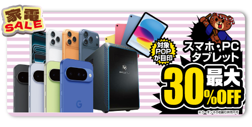 家電コーナーでは3月12日~3月22日の期間中!!スマホ・タブレット・パソコンが最大30%オフ!!