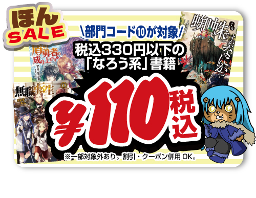 税込330円以下の「なろう系」書籍がレジにて税込110円販売!