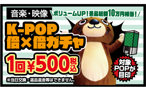 202502.15 CD/DVD 2月15日・16日2日間限定!K-POPガチャを刮目せよ! 倍×倍(バイバイ)ボリュームUP!UP! 1回500円!全回転するのもよし!是非、マンガ倉庫泡瀬店に遊びに来てください♪ 16日日曜日は沖縄マラソン!もちろん朝9時にお店はオープンしてます!チバリヨ~ジョガーのみんな!!