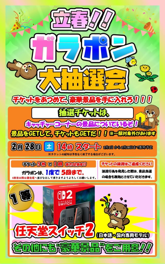 2月1日より稼働中のほとんどの景品にチケットを貼っています。