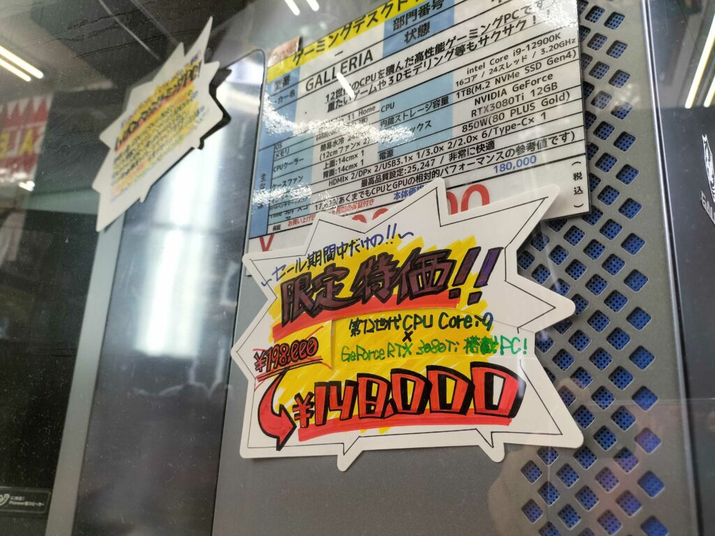 先日入荷したゲーミングデスクトップPCなんとイベント期間中限定セールでなんと…¥148.000となっております!!たった1台のみの販売ですので早いもの勝ちとなっております!!皆様のご来店お待ちしております!