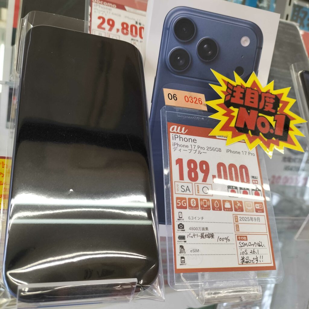 iPhoneの最新モデル『iPhone 17 Pro256GB』入荷しました!