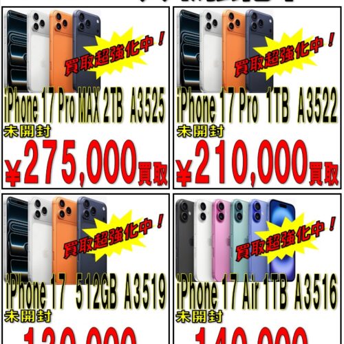 iPhone17&Air 集めてます! 未開封から中古品まで高価買取中!!
