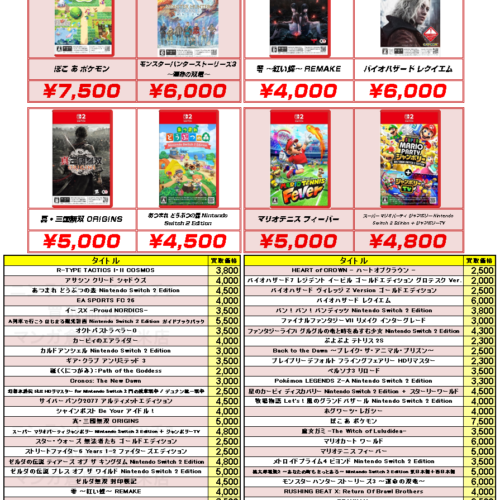 『ニンテンドースイッチ』ソフト買取価格表③~④ 表以外も高価買取中!