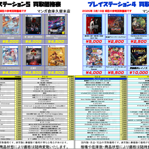 『プレイステーション5』『プレイステーション4』ソフト買取価格表①~② リスト以外のソフトも高価買取!