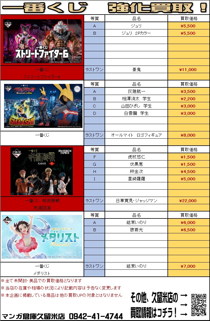 【4月】一番くじフィギュア高価買取中!マンガ倉庫久留米店をよろしくお願いします!