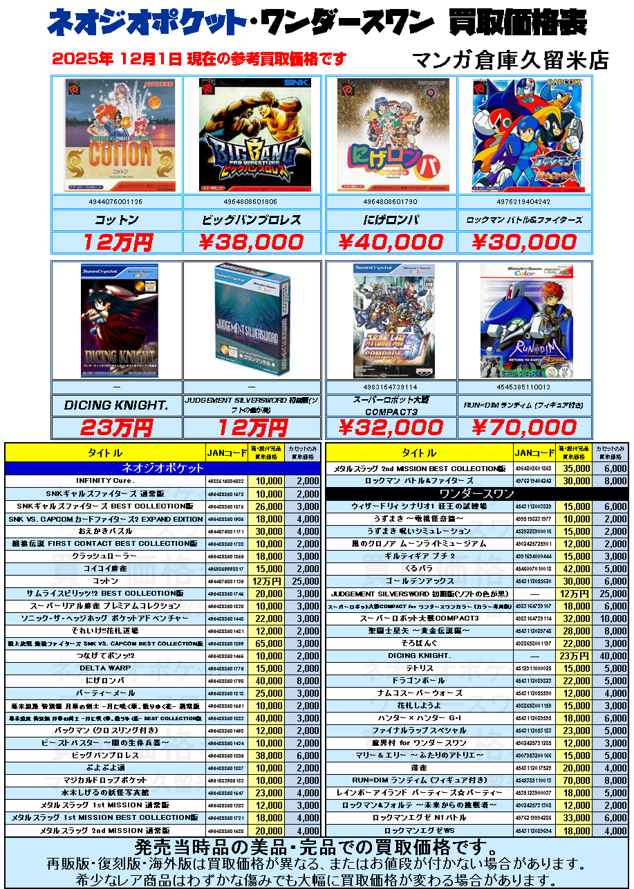『ネオジオポケット』『ワンダースワン』買取価格表 ゲームボーイの牙城に挑んだ名ハード!