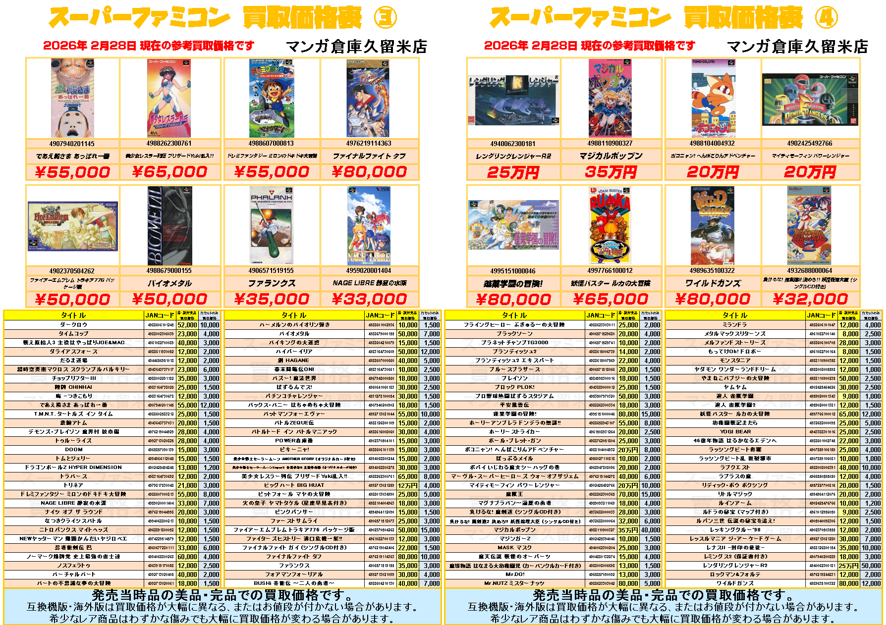 『スーパーファミコン』買取価格表③~④ スーパーエンターテインメントな高価買取中です!