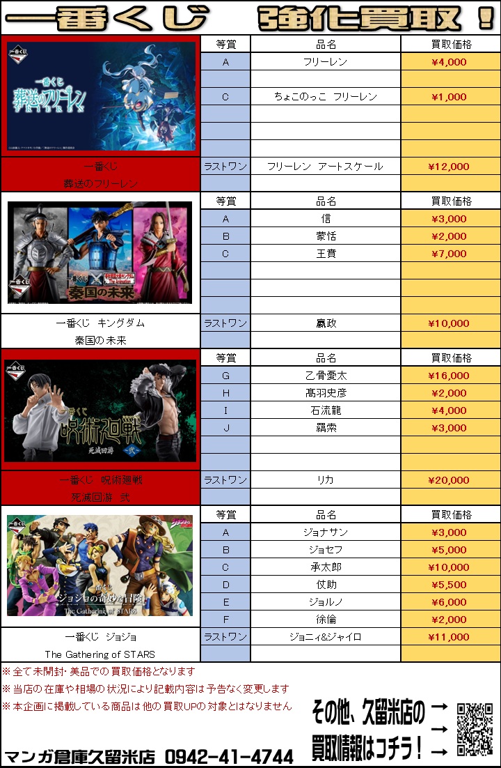 【4月】一番くじフィギュア高価買取中!マンガ倉庫久留米店をよろしくお願いします!【27日更新】
