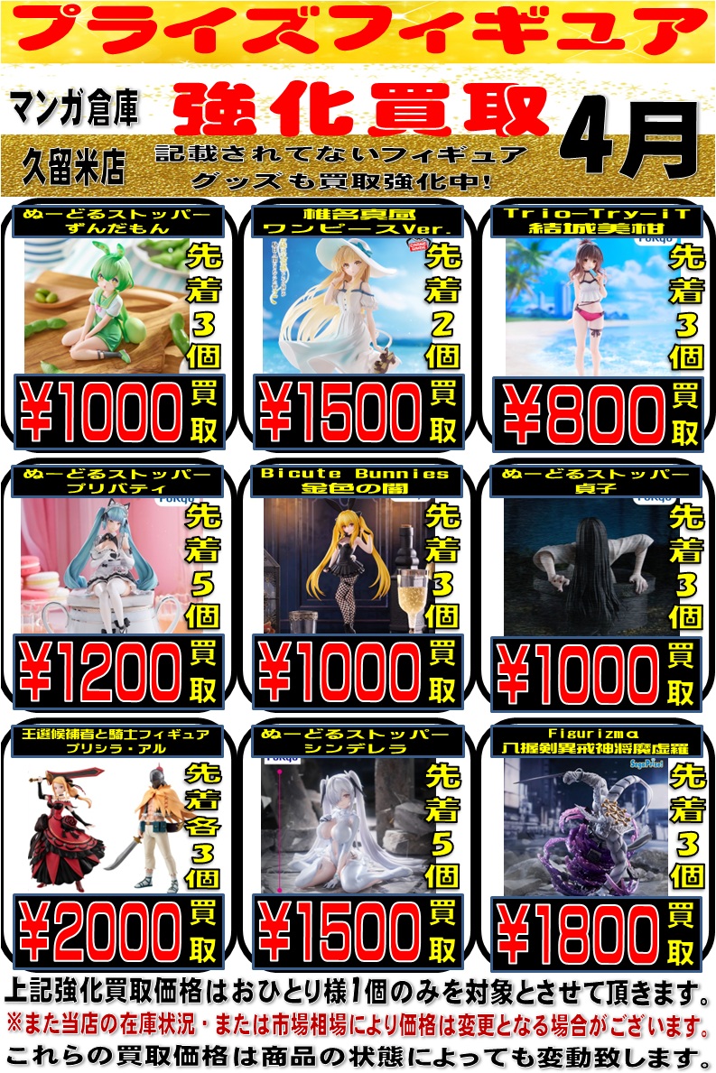 【4月】久留米店のプライズフィギュア強化買取!【7日更新】