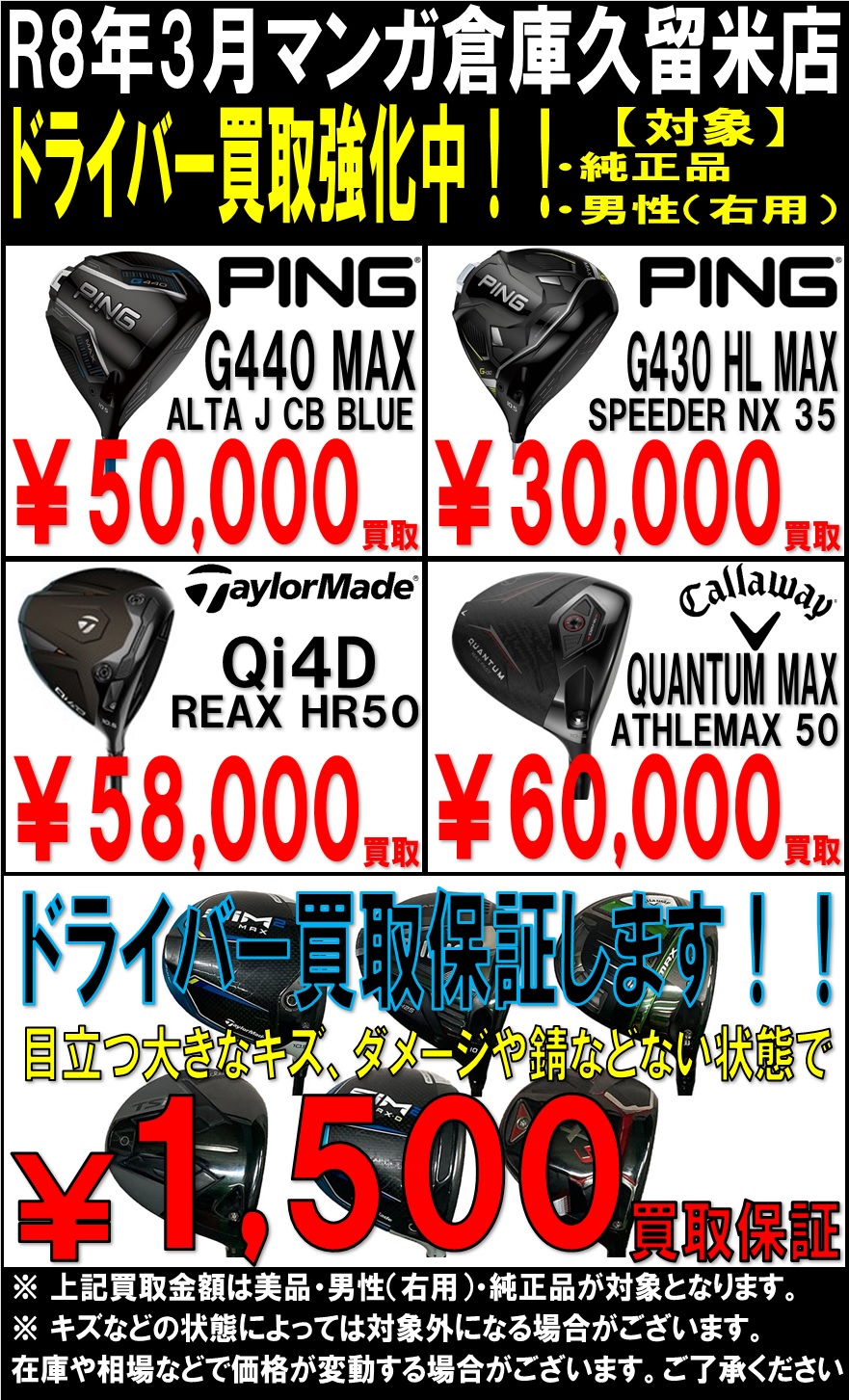 ゴルフ ドライバー買取強化中!! 保証も始めました!!