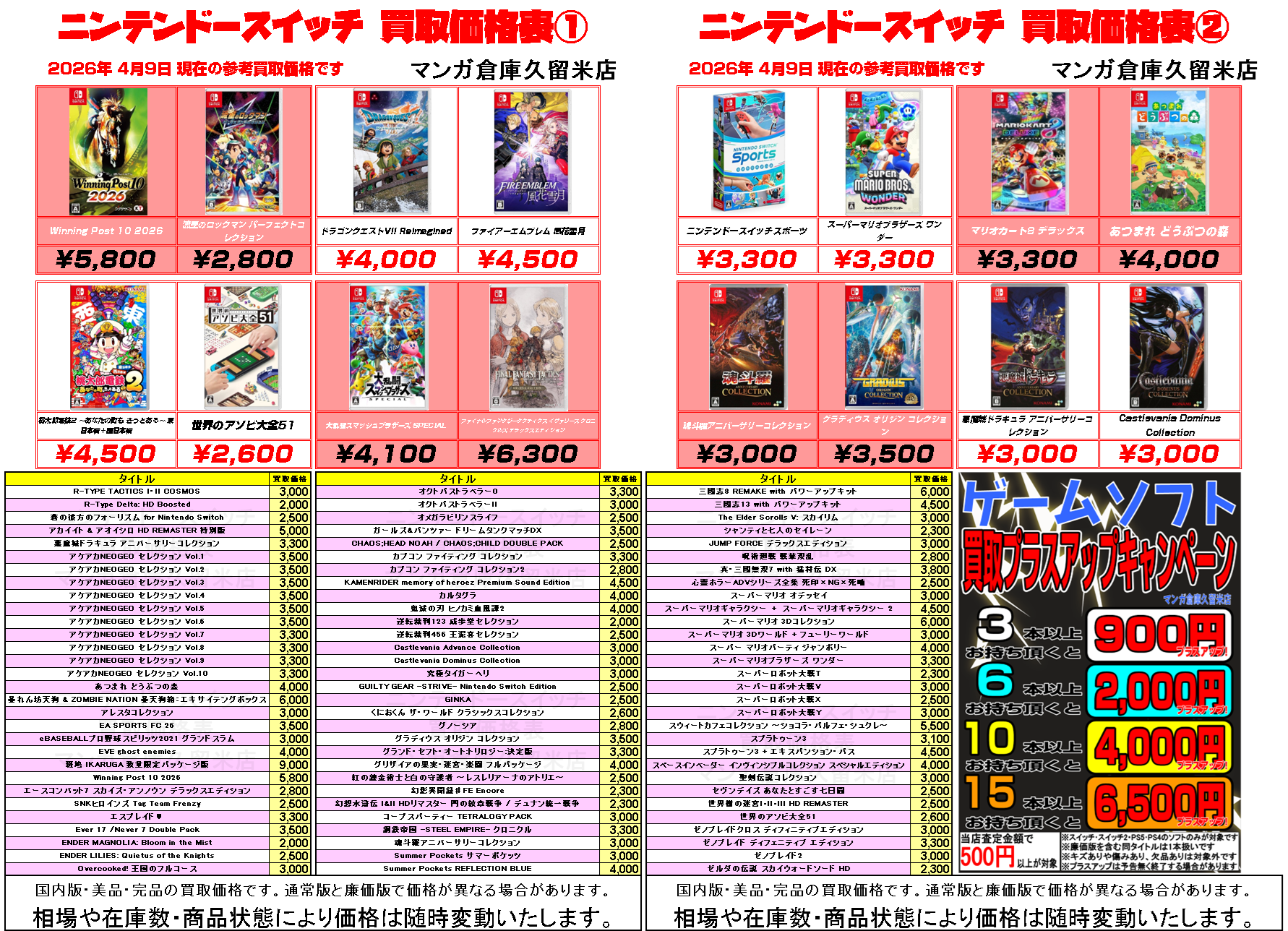 『ニンテンドースイッチ』ソフト買取価格表①~② プラスアップ買取も実施中!