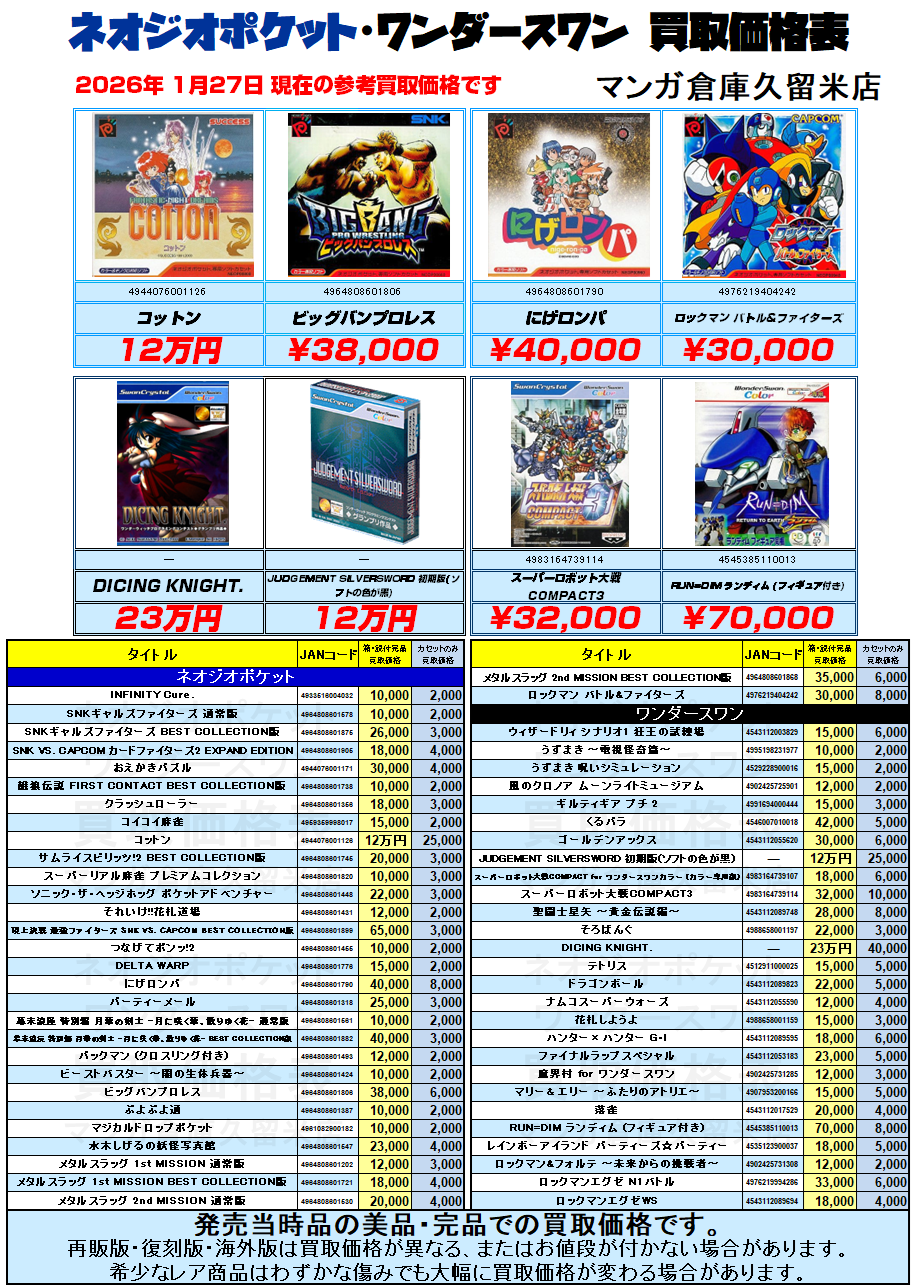 『ネオジオポケット』『ワンダースワン』買取価格表 ゲームボーイの牙城に挑んだ名ハード!