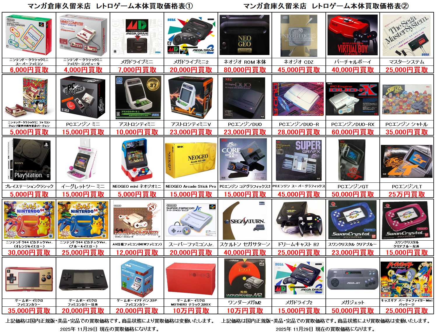 ファミコンミニから昭和レトロゲーム機、当時物のゲーム機買い取ります!レトロハード買取価格表!