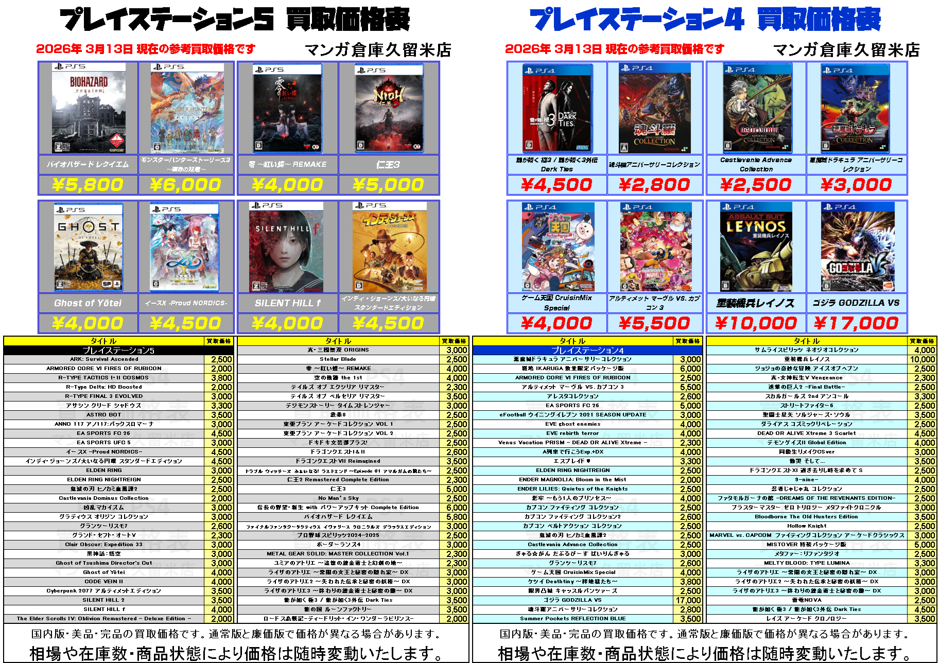 『プレイステーション5』『プレイステーション4』ソフト買取価格表①~② リスト以外のソフトも高価買取!