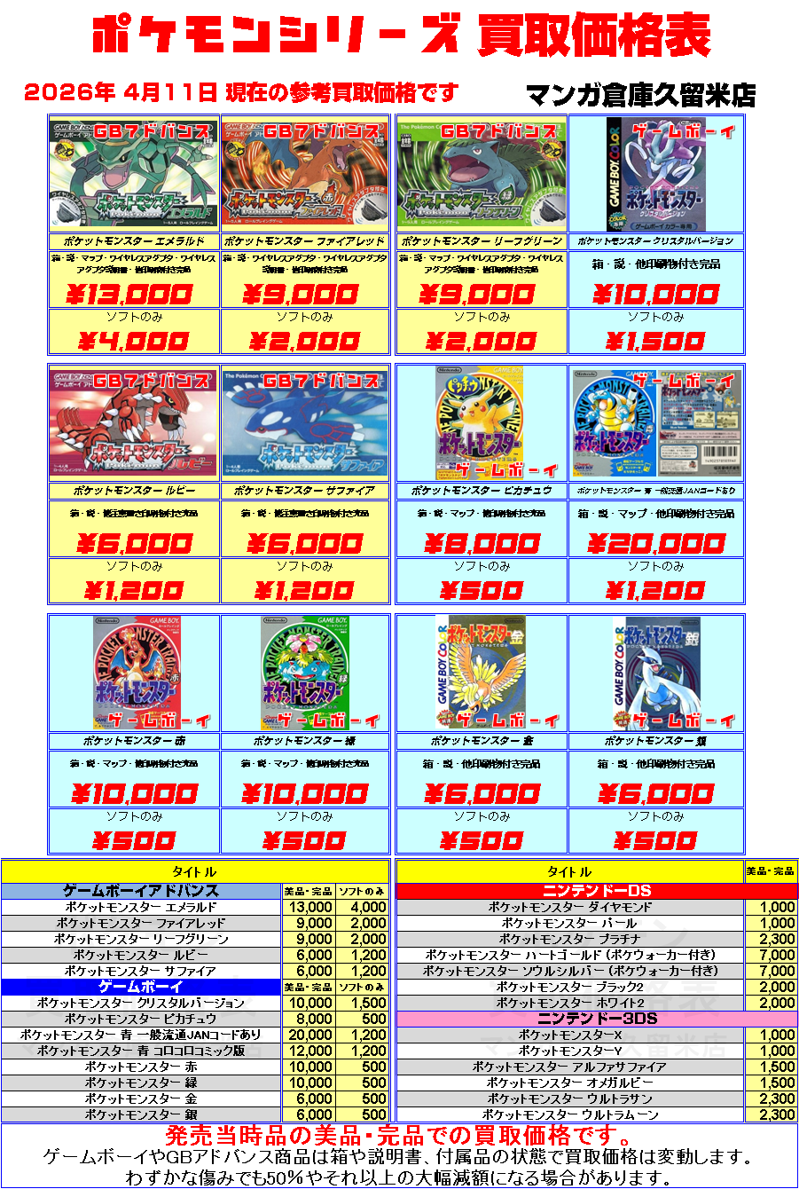 ポケットモンスターシリーズ 買取価格表 ポケモン買い取るぜ!