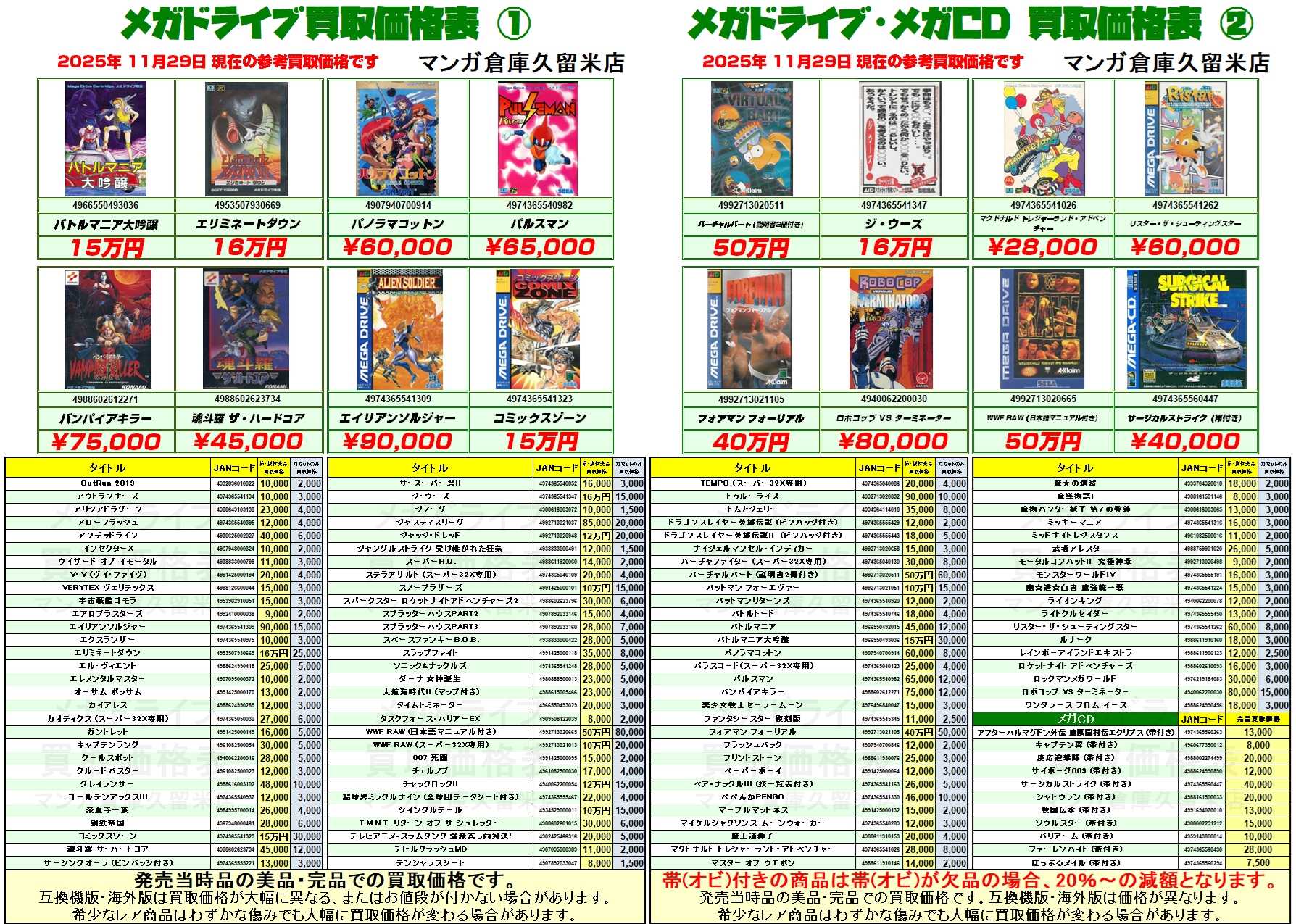 『メガドライブ』『メガCD』買取価格表①~②! 時代が求めた買取価格!