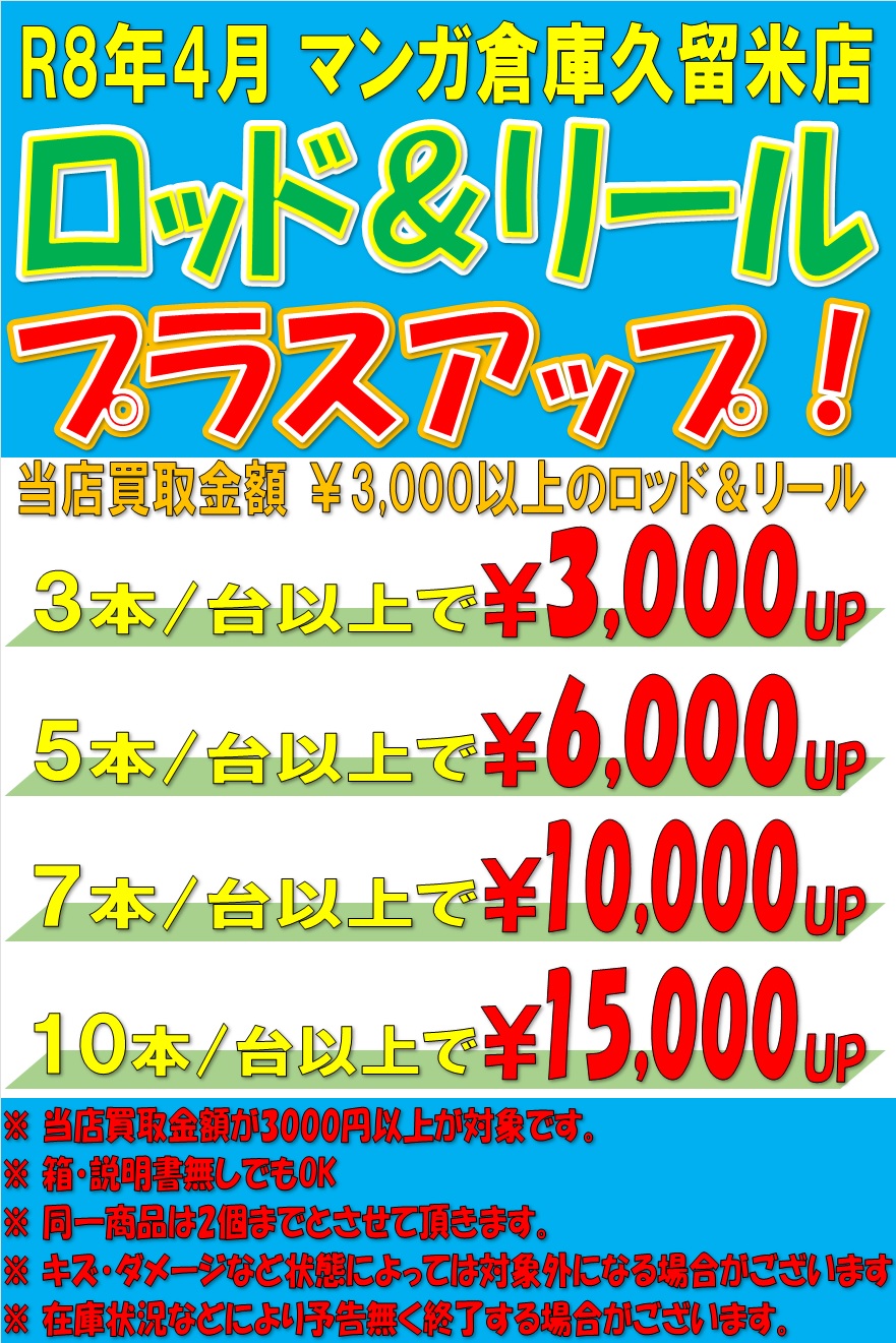 リール&ロッド買取プラスアップ開始!! 買取金額¥3000以上が対象!!