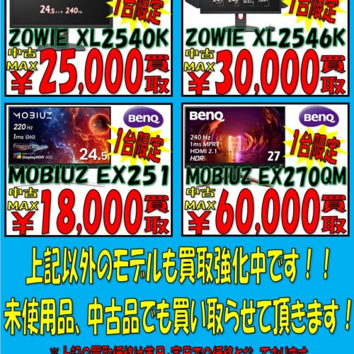 BenQ ゲーミングモニター集めてます!! その他モデルも高価買取中!