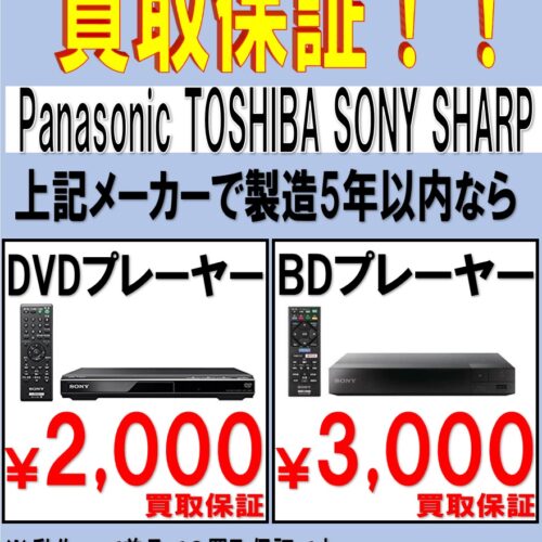 メーカー固定で製造5年以内のDVD・BDプレーヤー保証開始しました~