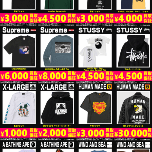 ストリートブランド①強化買取中!! Supreme/STUSSY/X-LARGE/A BATHING APE/HUMAN MADE/WIND AMD SEA 買取保証
