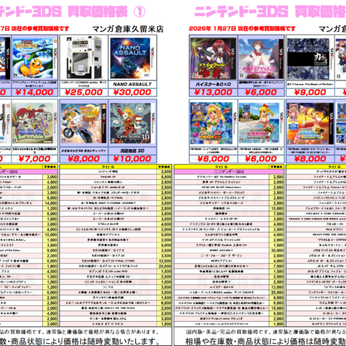 『ニンテンドー3DS』買取価格表①~②! レアソフト買取価格急上昇中!