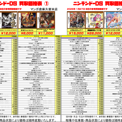 『ニンテンドーDS』買取価格表①~② レアもの続々買取UP中!
