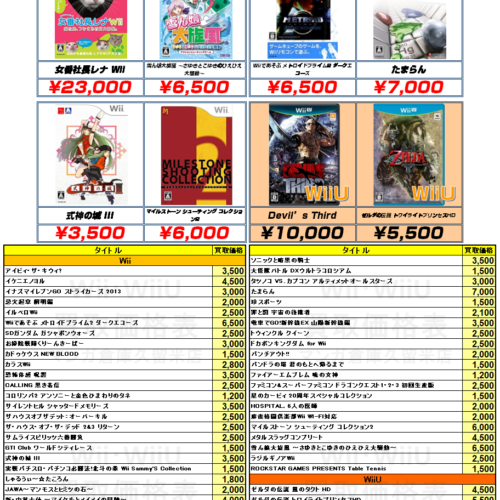 『Wii』『WiiU』買取価格表 ホラーゲームは高価買取!