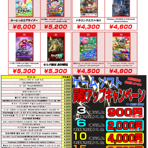 『ニンテンドースイッチ2』ソフト買取価格表 最新ハードも高価買取!