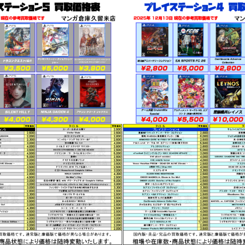 『プレイステーション5』『プレイステーション4』ソフト買取価格表①~② リスト以外のソフトも高価買取!